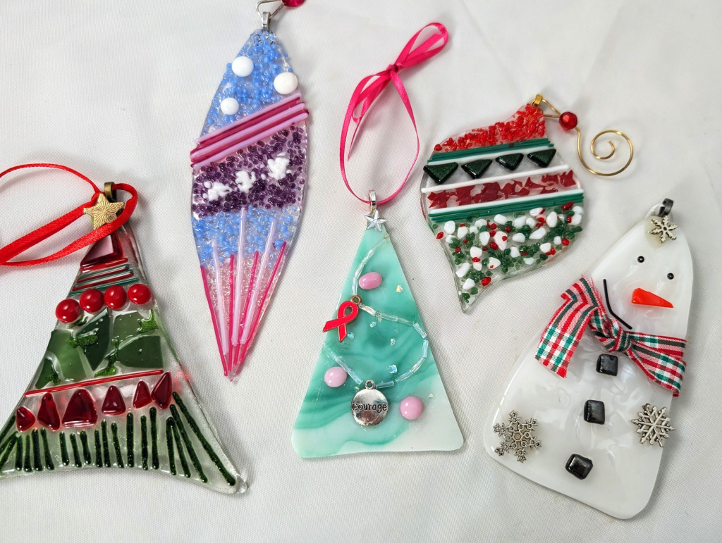 Design a suncatcher for the window or a holiday ornament. The class includes everything to complete the project. If your creation needs to be fused, it will be ready to take home by Monday, December 8.